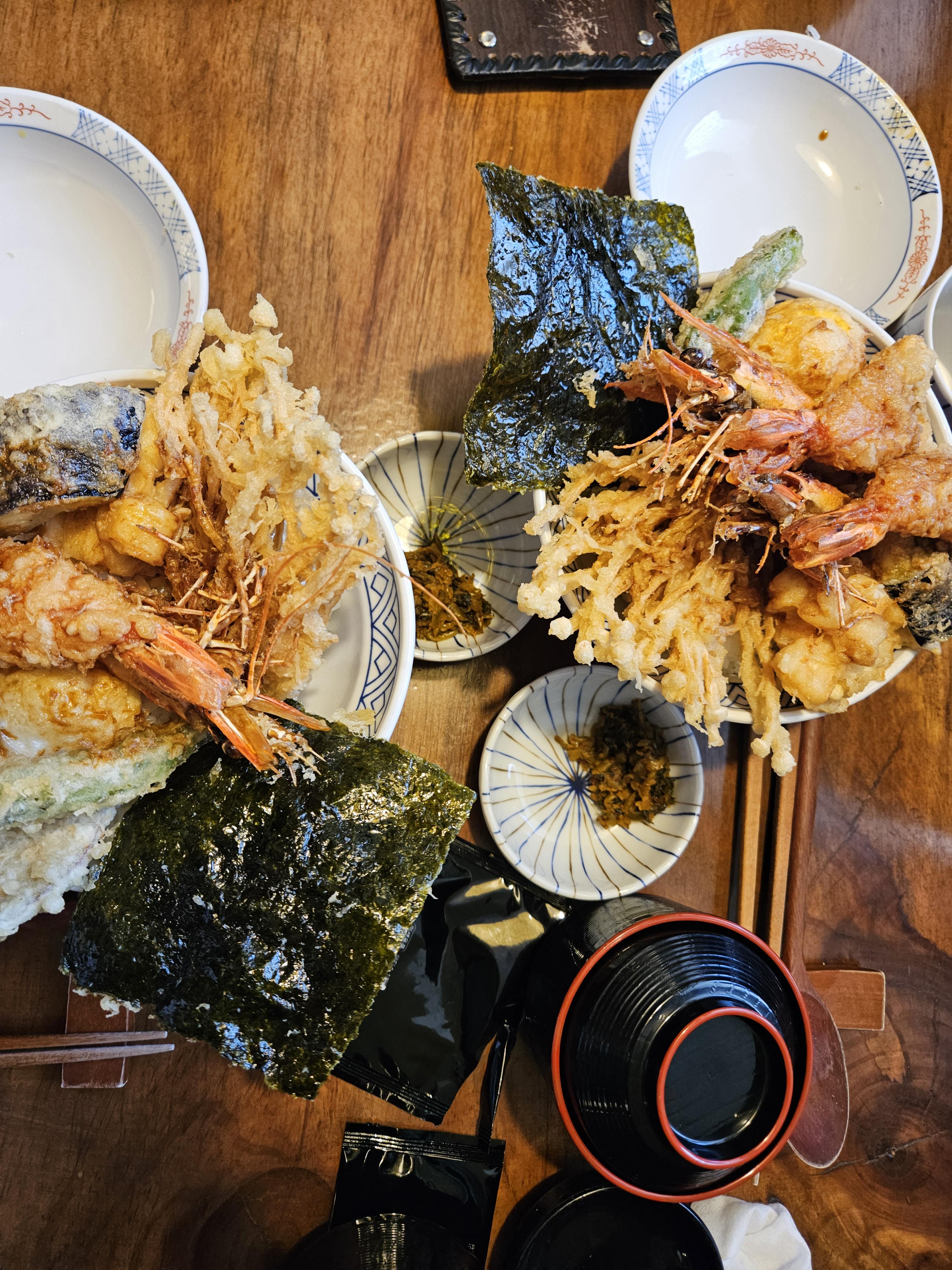 이 요리는 여러가지 해산물과 야채를 튀긴 요리입니다.
