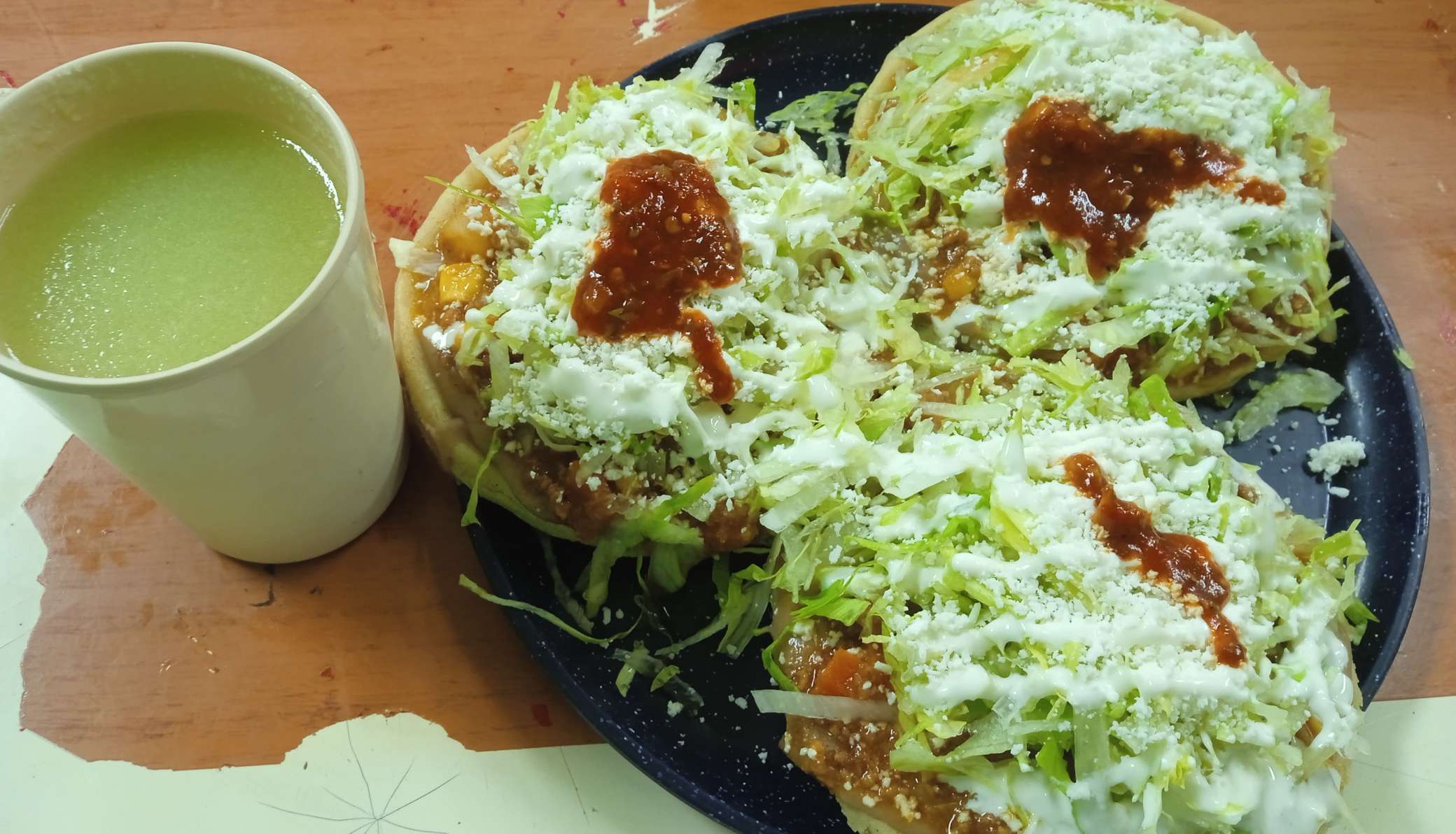 sopes de carne picada y agua de pepino 🤤🤤👏👏😋😋