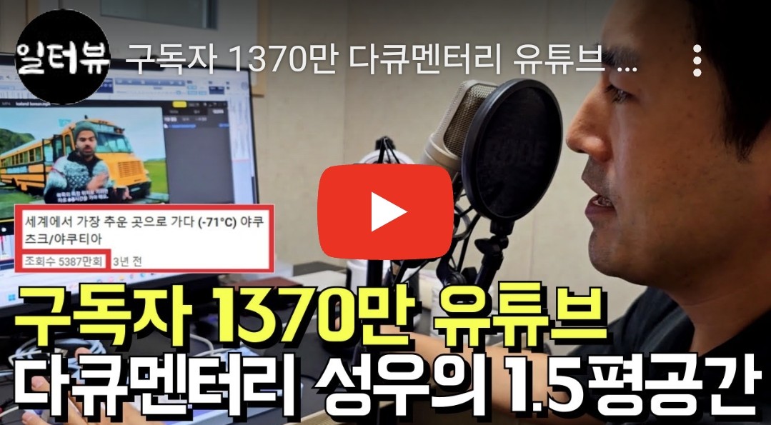일터뷰, 구독자 1370만 유튜브 다큐멘터리 성우의 1.5평 공간