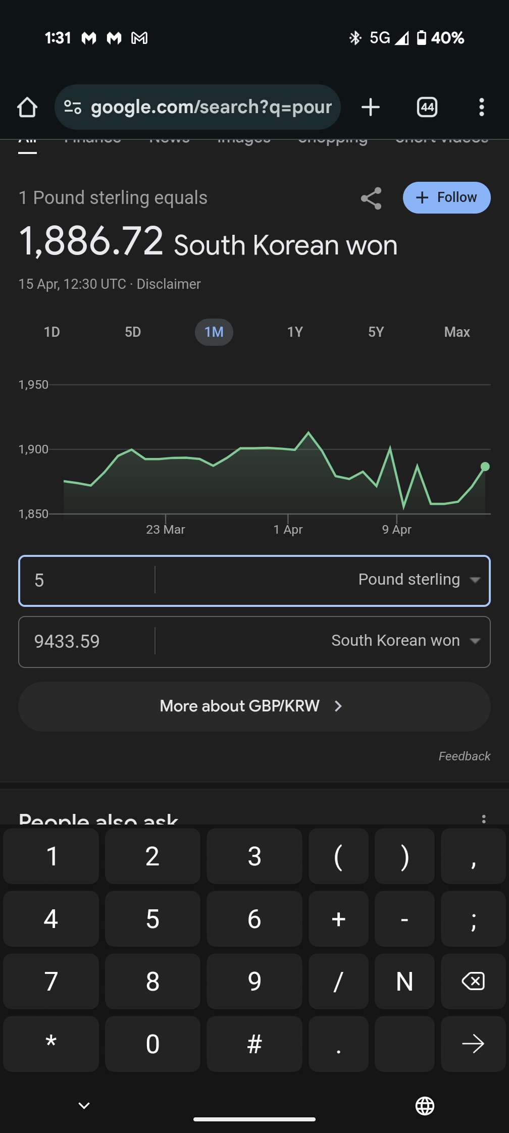 For 1800 won = 1 pound