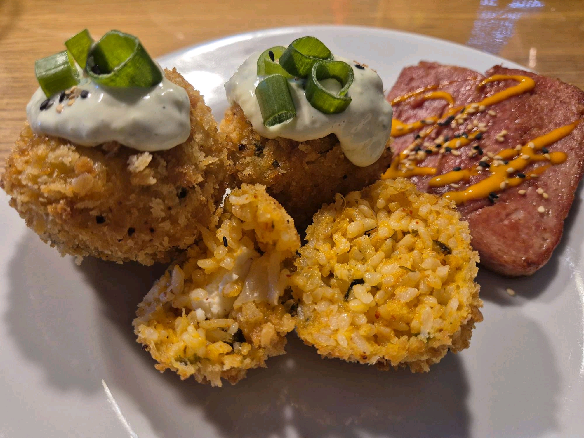 The day started with a good late breakfast and ended with Kimchi Fried Rice Arancini with spam, Sriracha mayonnaise, and scallion lime aioli