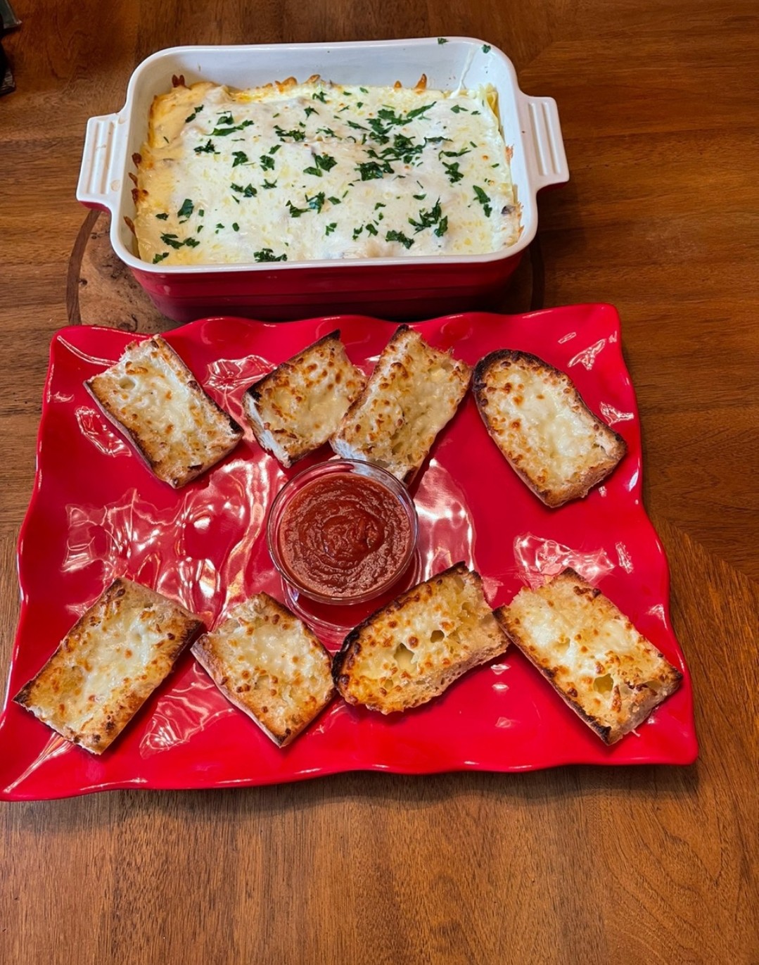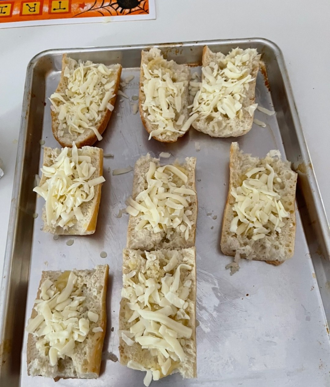On top of all that I baked a baguette and turned it into garlic cheesy bread by combining butter and garlic along with Mozarella cheese.