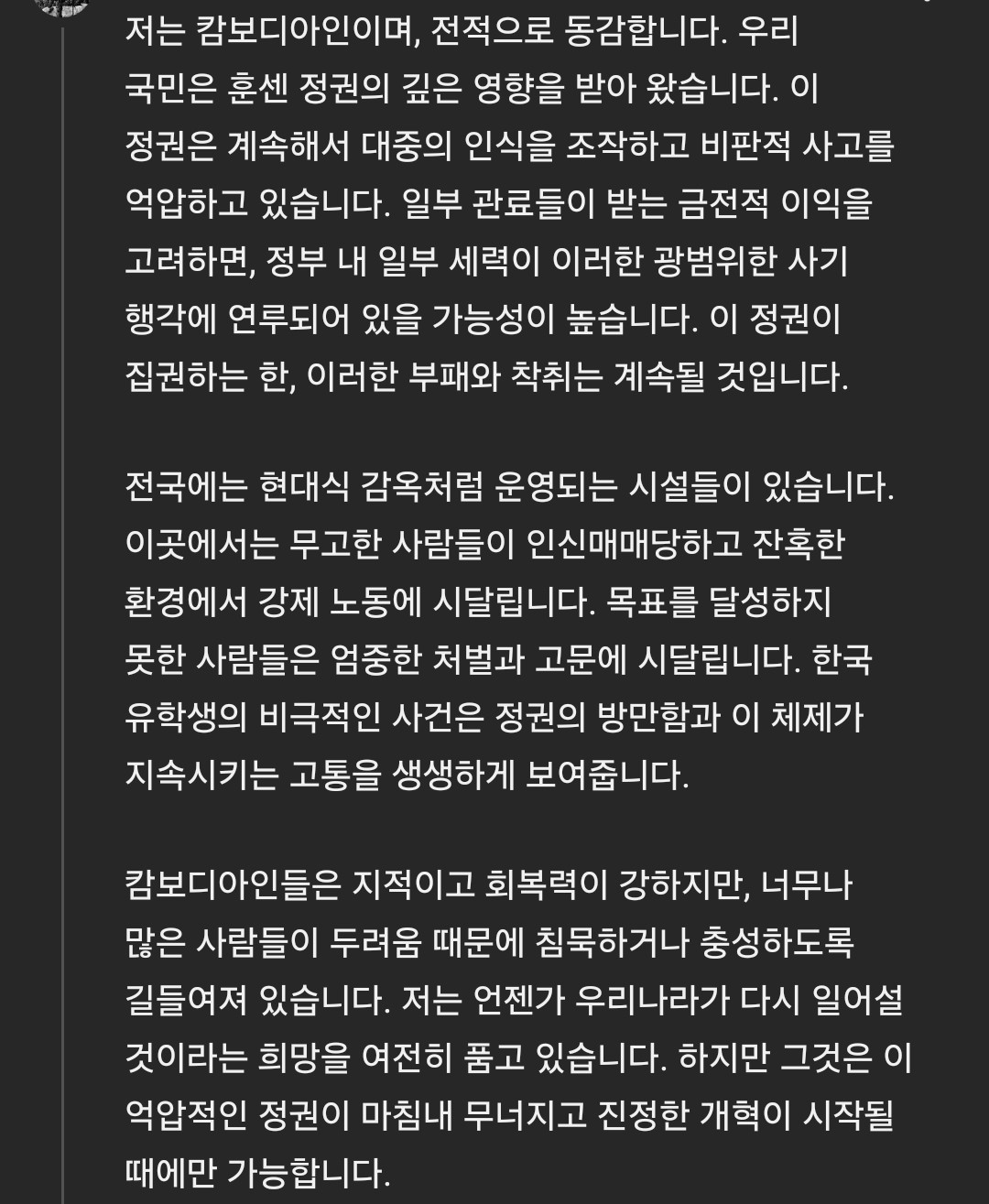 I am Cambodian, and I completely agree. Our people have been deeply influenced by the Hun Sen regime, which continues to manipulate public perception and suppress critical thought.