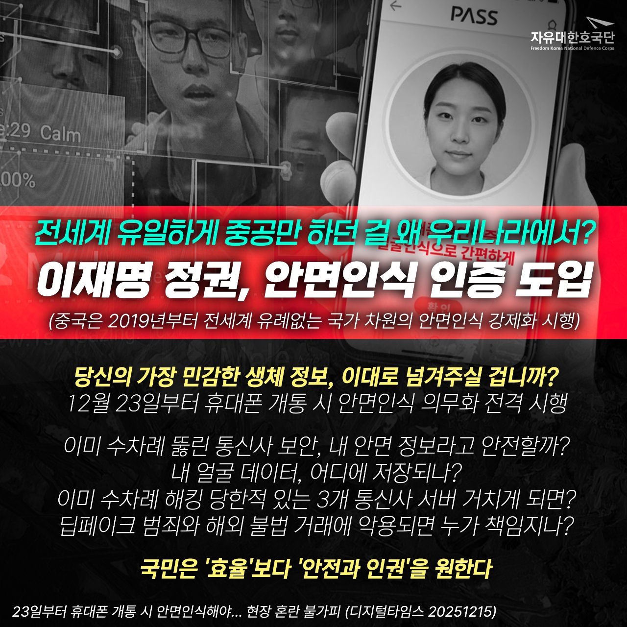 속보,휴대폰 개통시 안면인식 의무화정책 반대에 관한 청원