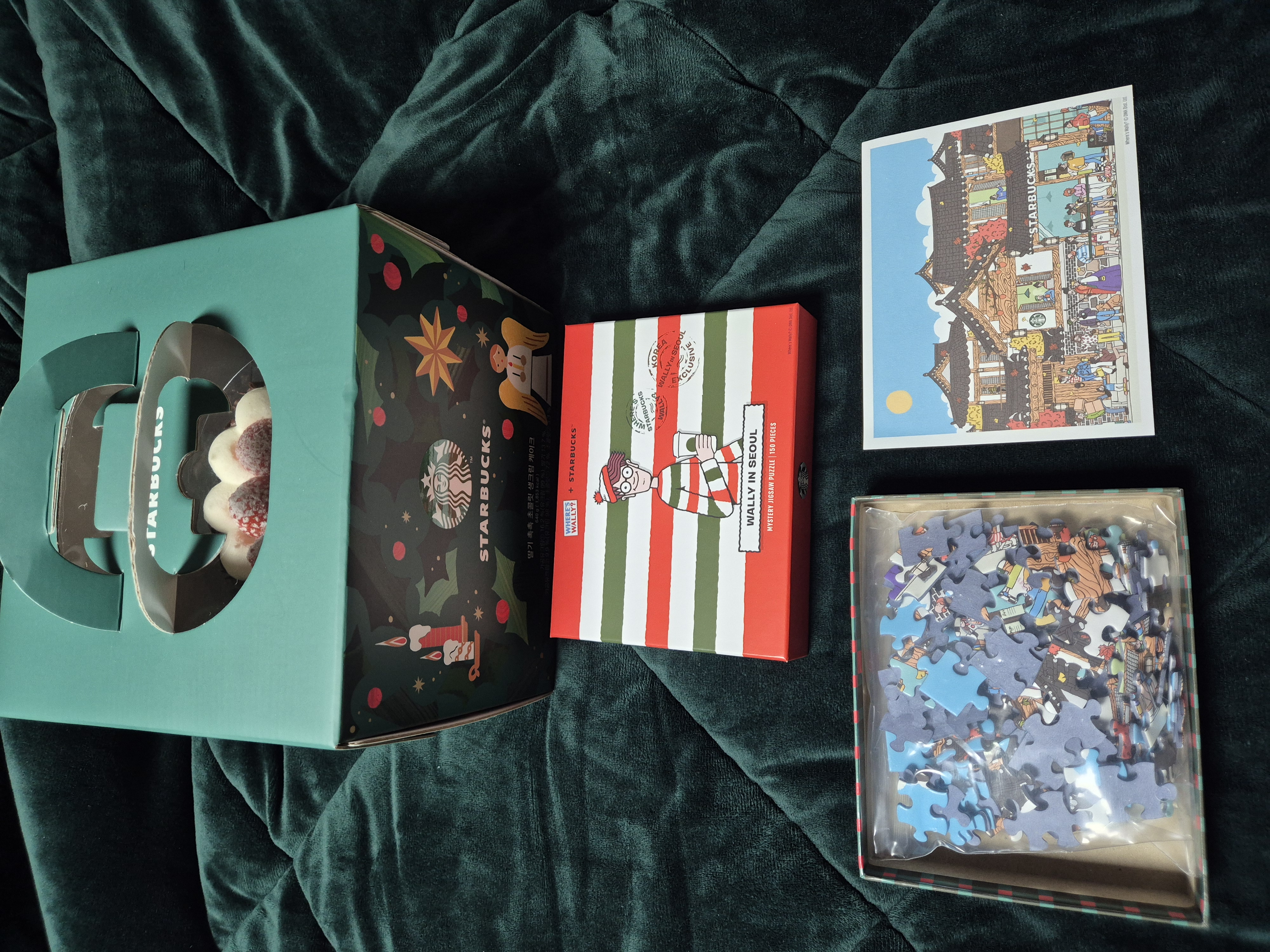 스타벅스 케이크와 월리를 찾아라 퍼즐세트 ,크리스마스 케이크를 예약했었고, 12월 23일날 받았습니다.