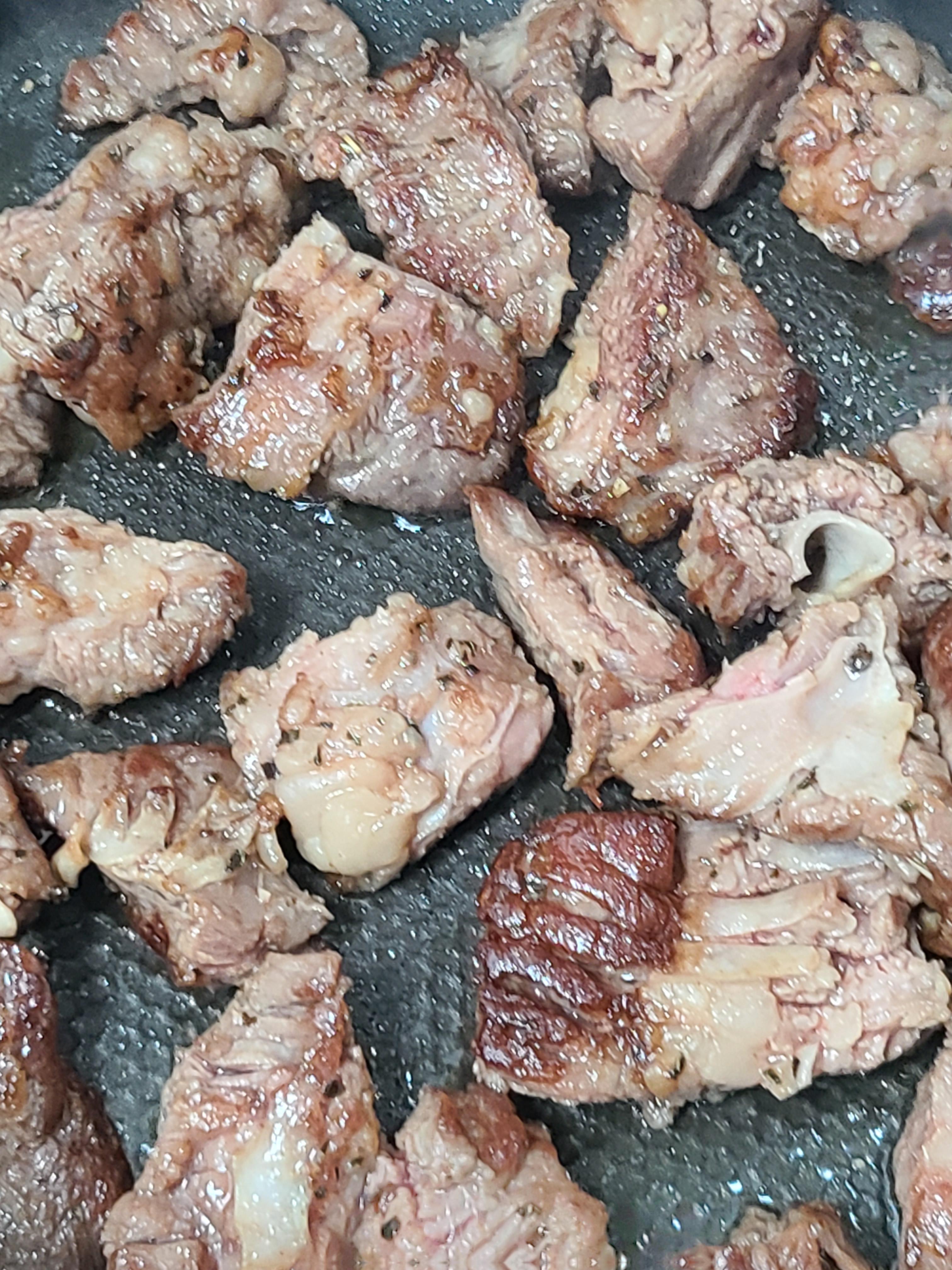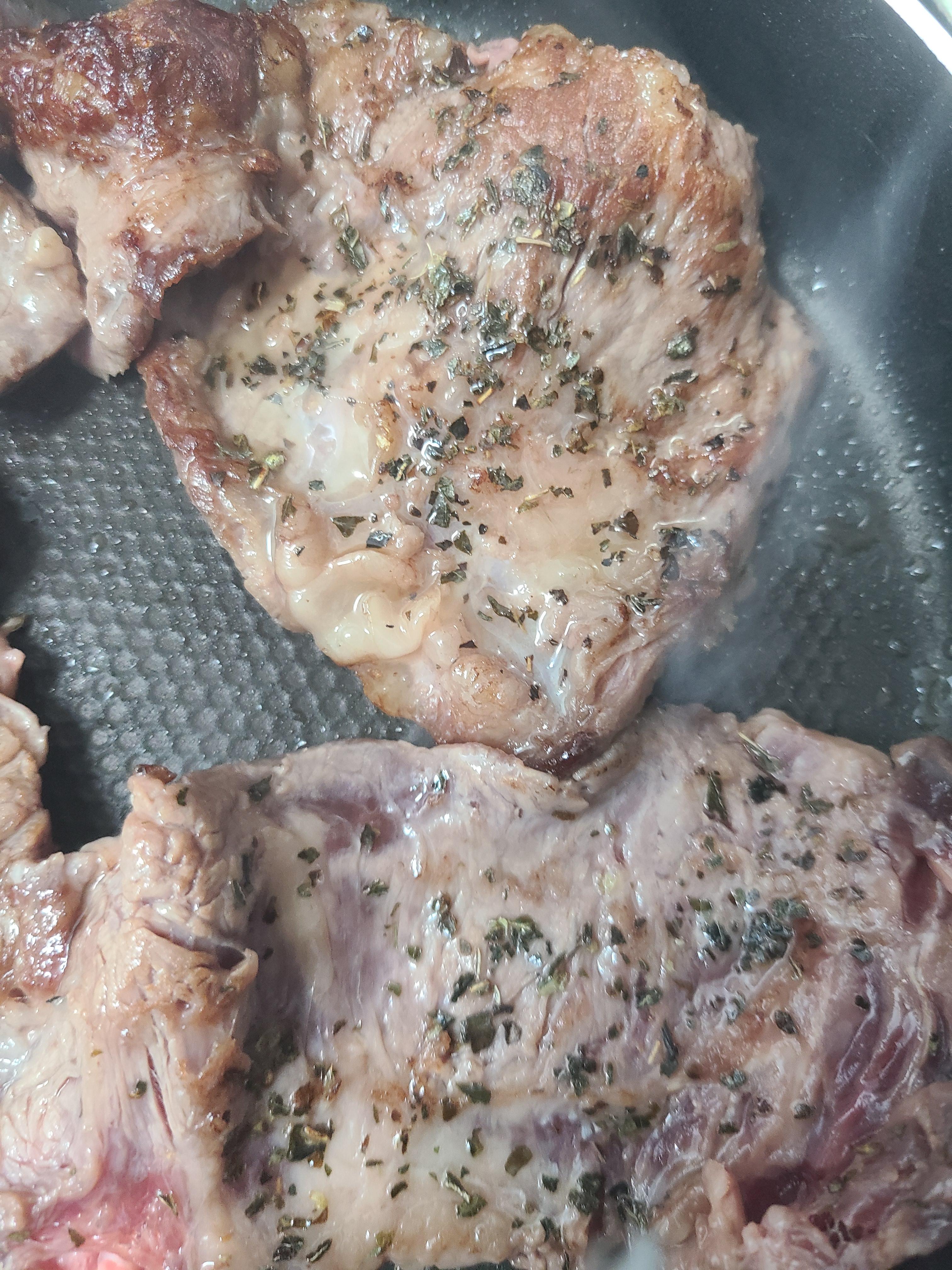 기름이 많이 보이는데 느끼하지 않게 타임가루 잔뜩 투하시켜주고..굽는데 처음에 기름이 왜이렇게 많냐고 키친타월로 닦으면서 센불로 구웠지요.고기의 육즙은 생명이니깐요.